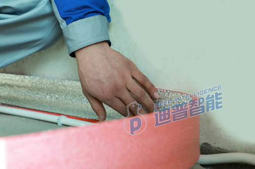 第一步:鋪設(shè)邊界保溫條。我們公司定制的邊界保溫條以EPE珍珠棉主要材料,顏色為粉紅色。鋪設(shè)邊界保溫條主要是為了減少地暖熱量的流失。它不僅可以減慢由地面受熱而導致的水泥蓄熱層膨脹,防止墻面水泥層卷起;而且能夠阻擋水泥沿著邊縫往下流淌,以免出現(xiàn)材料浪費或后期出現(xiàn)地面咯吱聲。所以,鋪設(shè)邊角保溫條是非常有用的。