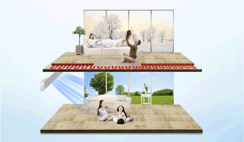 | 節(jié)能環(huán)保 | 1、比多聯(lián)機減少氟利昂使用量,更加環(huán)保 2、相較燃氣壁掛爐,冬季空氣源熱泵地暖采暖運行費用節(jié)省50%左右 3、不懼氣荒,不求氣源,溫暖如一 |