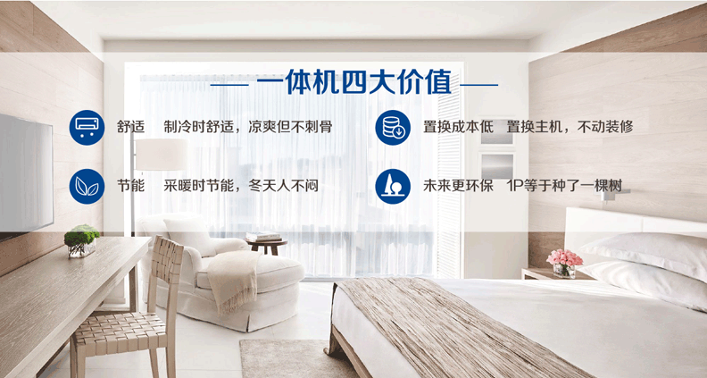 全集成(安裝簡單 維護時方便 使用時省心):水力組件高度集成,室內(nèi)風機內(nèi)置二通閥,提升泵(可選)